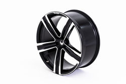 曲面を多用し、リムいっぱいまで伸びたラインは視覚的にもホイールの大きさを強調します。光沢のあるブラックスポークを縁取るように輝くダイヤモンドカットが精悍さを引き立てます。